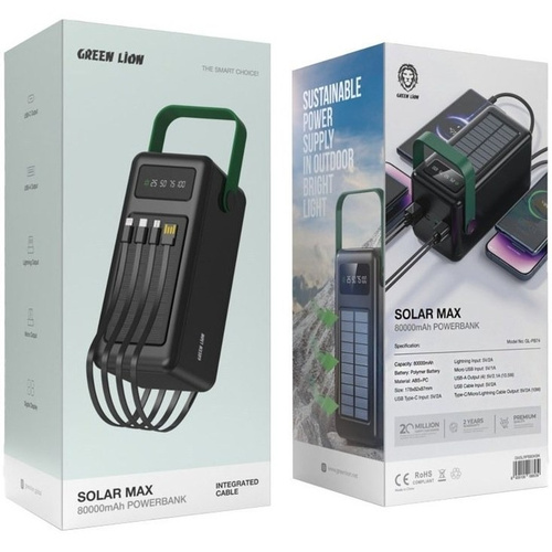 نام محصول: پاوربانک سولار مکس گرین لاین 80000 میلیآمپر (Green Lion Solar Max 80000mAh Powerbank)